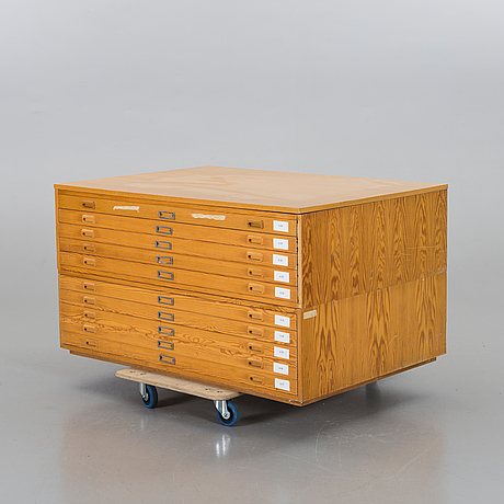 2-delat. Fanérad i ek, front med lådor, bredd 135 cm, djup 95 cm, höjd 74 cm.